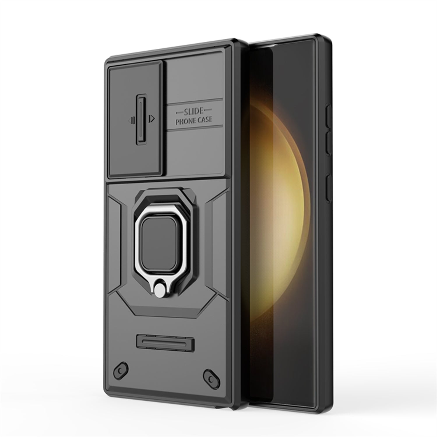 Kapa Armor Slider Back Cover for Samsung Galaxy S24 Ultra | Inbuilt Ring + Camera Slider Shockproof Lens Protection Bumper Back Case (Black)