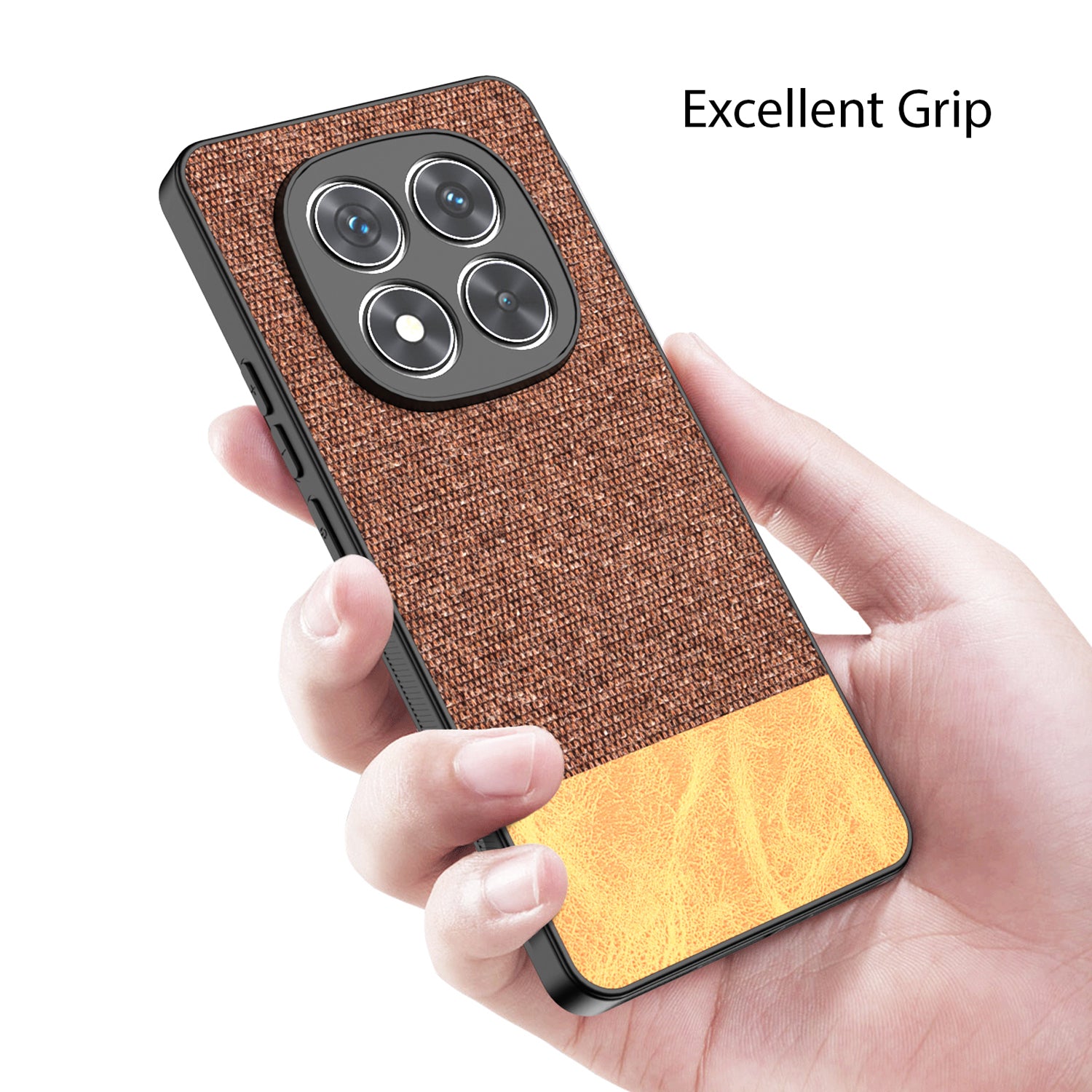 Kapa Soft Fabric & Leather Hybrid Protective Back Cover for Redmi Note 14 Pro (5G) | Shockproof Slim Hard Anti Slip Back Case (Brown)