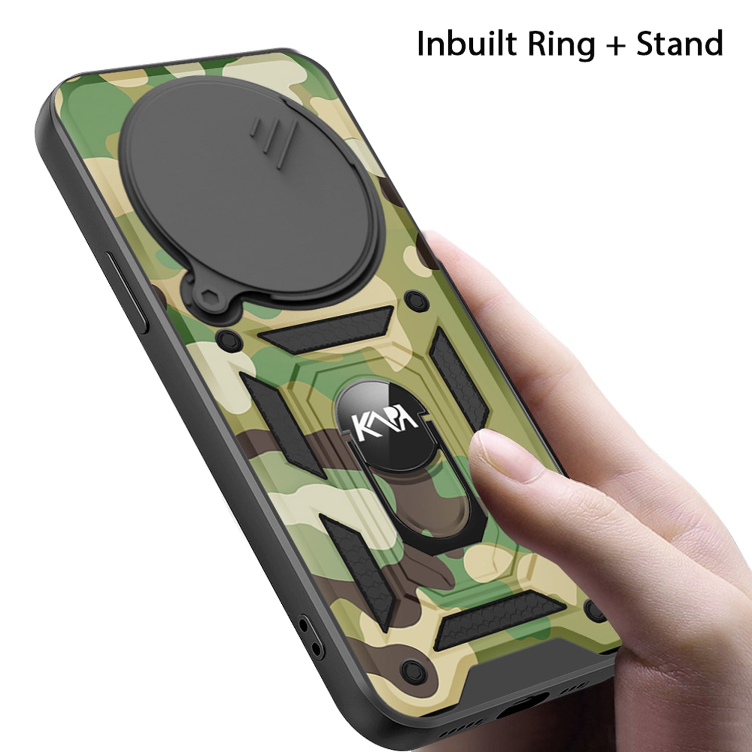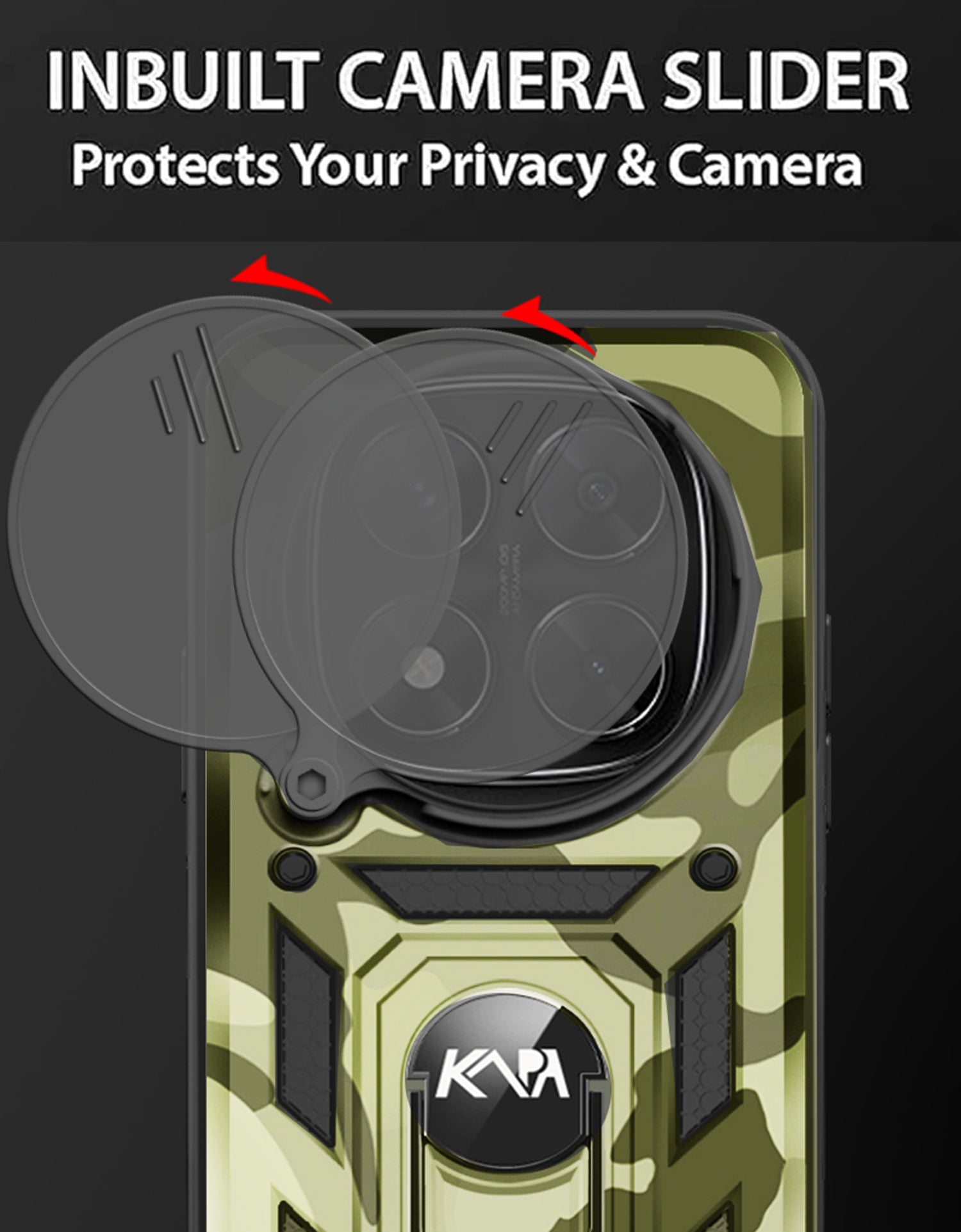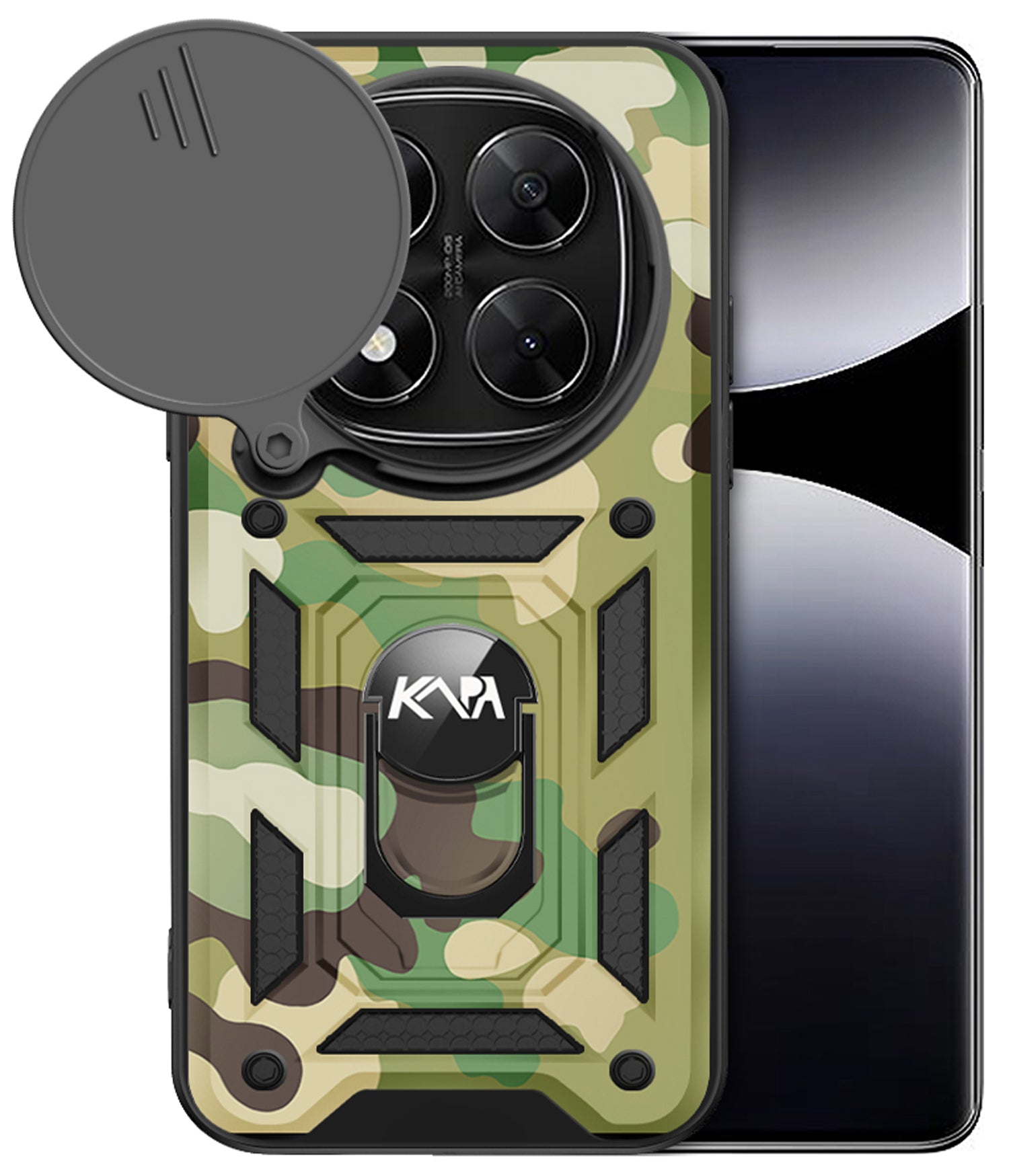 Kapa Tank Back Cover for Redmi Note 14 Pro Plus | Inbuilt Ring + Slider Shockproof Lens Protection Bumper Back Case (Green)