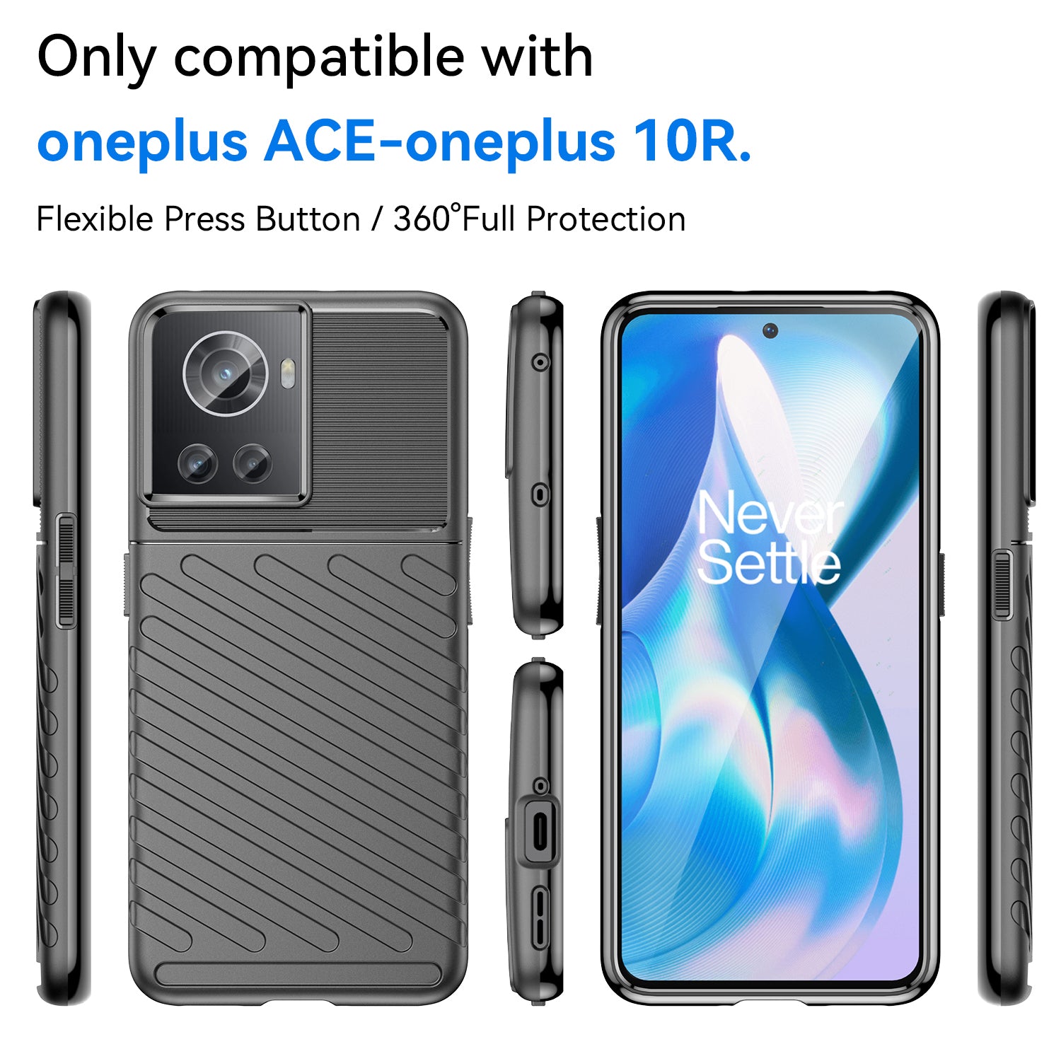 Kapa Thunder Protective Flexible Back Cover for OnePlus 10R | Slim Anti Slip Rugged TPU Shockproof Full Body Bumper Case (Black)