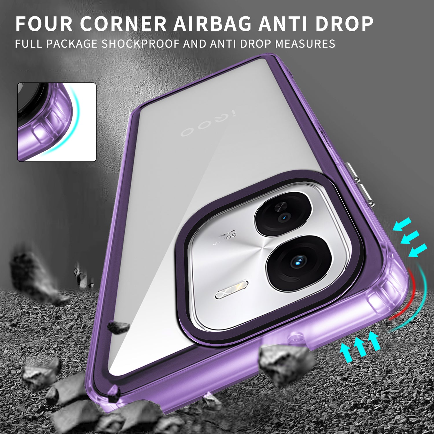 Kapa Warrior Acrylic Clear Back Cover For IQOO Z9X | Slim Shockproof [Military Grade Protection] Hybrid Bumper Case (Purple Sides)